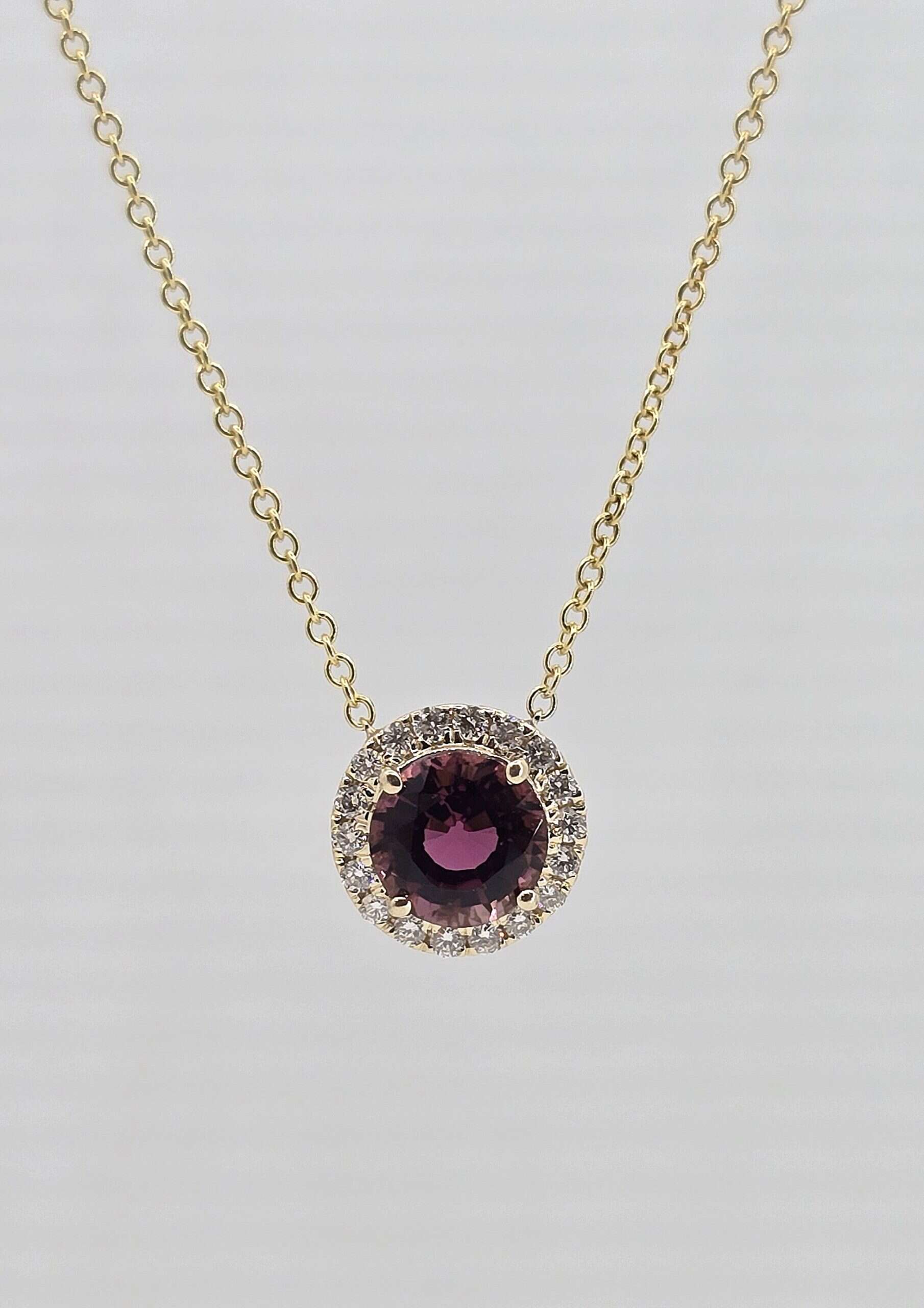 14k .82ct Pink Tourmaline and Diamond Halo Necklace