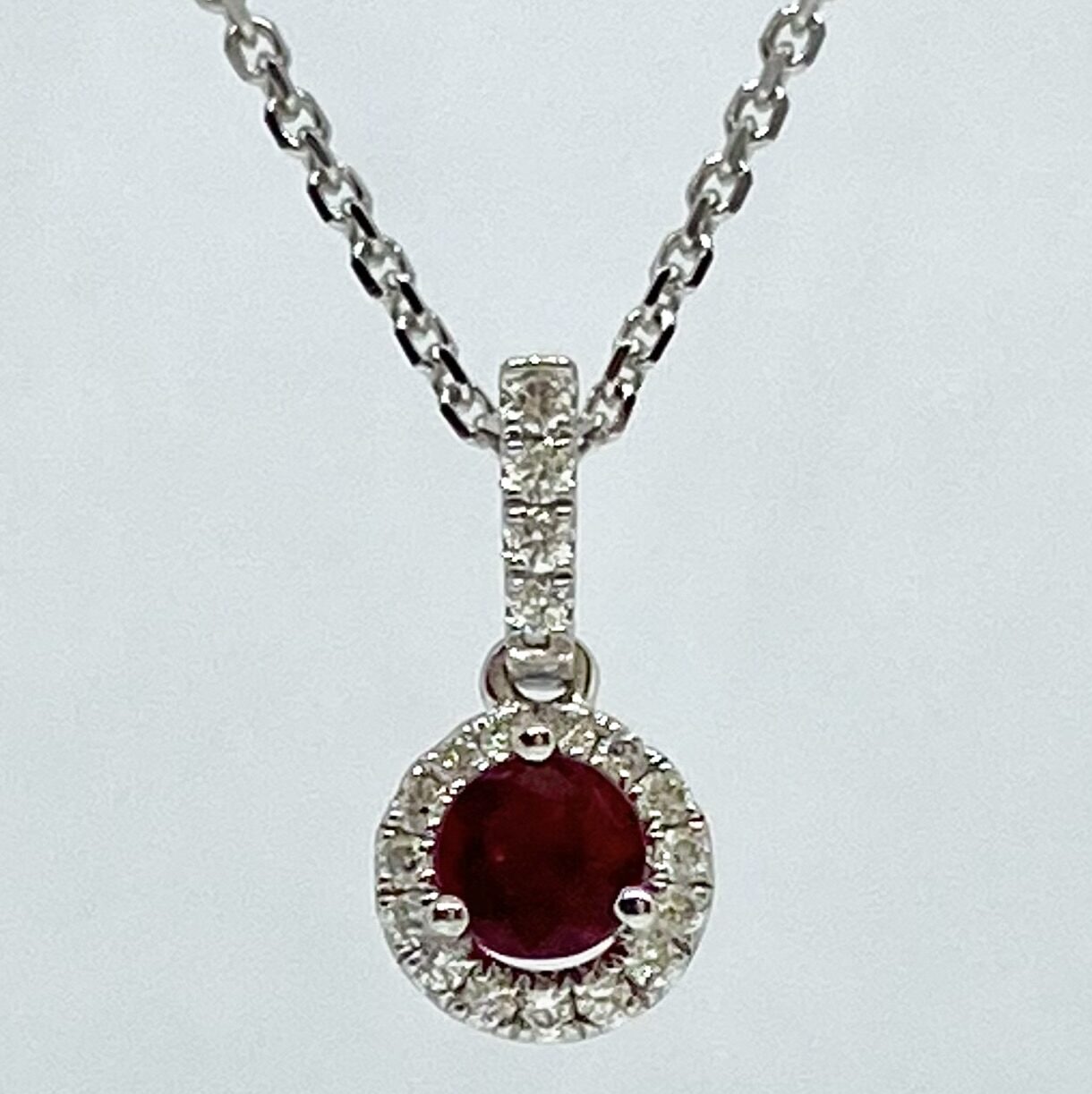 18k white gold .22ct ruby and .09ctw diamond pendant