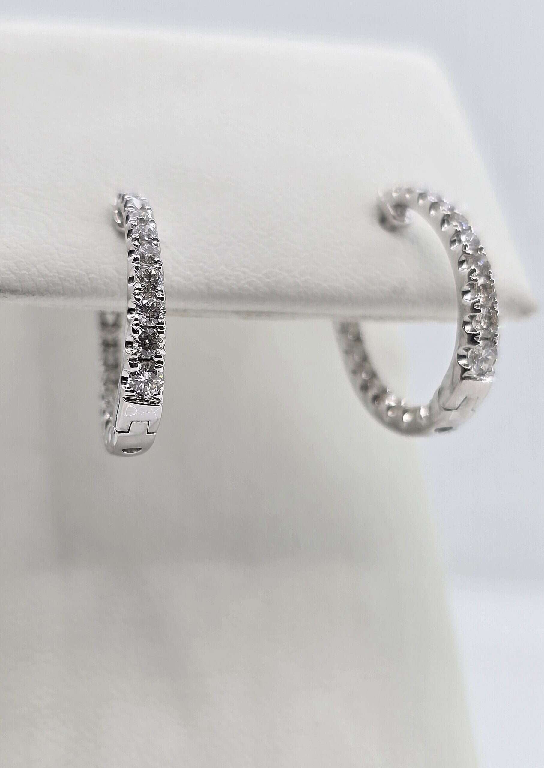 Huggie style hoops with diamonds on the inside and outside