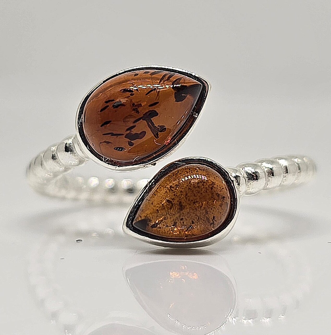 Amber stones measure approximately 5.7×8.7mm and 4.8x7mm